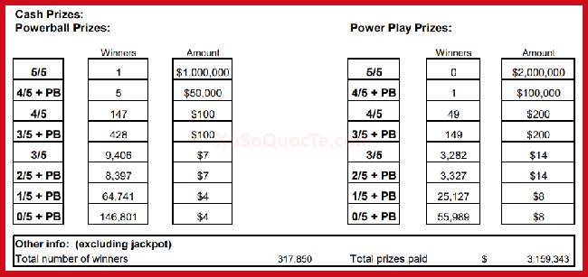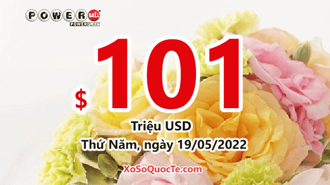 Mức jackpot cho phiên quay thưởng sắp tới của xổ số Powerball là $101 triệu USD với phiên quay thưởng diễn ra vào Thứ Năm, ngày 19 tháng 05 năm 2022 (theo giờ Việt Nam).