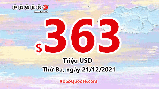 Mức jackpot cho phiên quay thưởng sắp tới của xổ số Powerball là $363 triệu USD với phiên quay thưởng diễn ra vào Thứ Ba, ngày 21 tháng 12 năm 2021 (theo giờ Việt Nam).