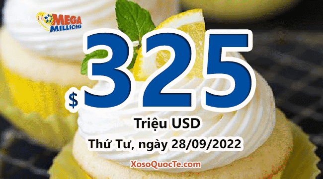 Jackpot của Mega Millions lên mốc $325 triệu đô-la. Phiên quay thưởng sắp tới của Mega Millions sẽ diễn ra vào Thứ Tư, ngày 28/09/2022 (giờ Việt Nam) tới đây.