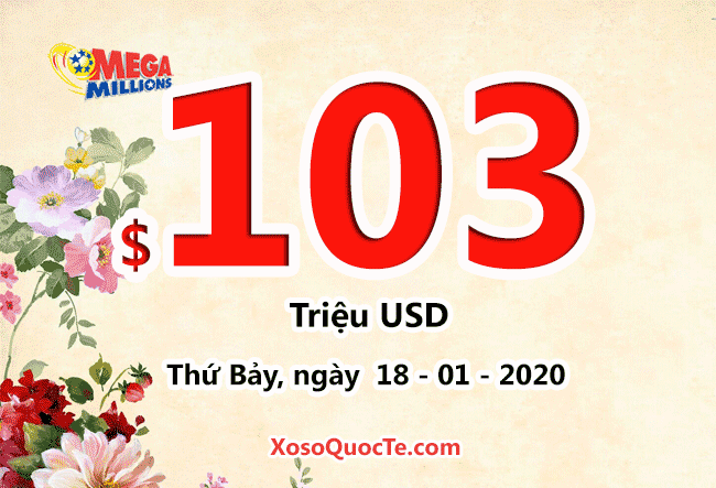 Với phiên quay số tiếp theo, phần thưởng cho người may mắn nhất của xổ số Mega Millions đã lên tới $103 triệu đô-la tương đương hơn 2369 tỷ VNĐ. Phiên quay thưởng này sẽ diễn ra vào Thứ Bảy ngày 18 tháng 01 năm 2020 (theo giờ Việt Nam).