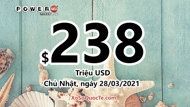 Xổ số Powerball đang ngày càng “nóng” hơn sau hôm nay – ngày 25/03/2021 (giờ Việt Nam), Jackpot đã tăng tới mốc $238 triệu USD, sau khi tiếp tục chưa thấy được ai sở hữu tấm vé chứa cả 6 con số may mắn của giải jackpot.