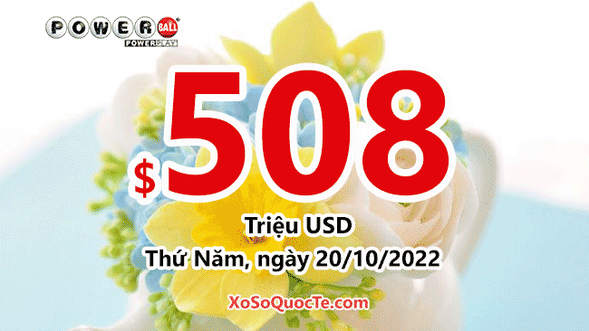 Xổ số Powerball đã được cộng dồn giá trị giải thưởng lớn nhất lên con số $508 triệu đô-la. Phiên quay thưởng tiếp theo của Powerball sẽ diễn ra vào Thứ Năm, ngày 20 tháng 10 năm 2022 (theo giờ Việt Nam). Ai sẽ sở hữu jackpot tiếp theo đây?