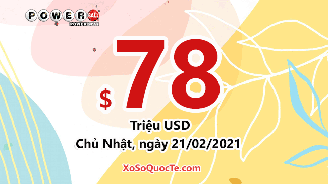 Ai sẽ là chủ nhân may mắn nhất của giải xổ số Powerball lần này? Phiên quay thưởng cho jackpot $78 triệu USD sẽ diễn ra vào Chủ Nhật, ngày 21/02/2021.