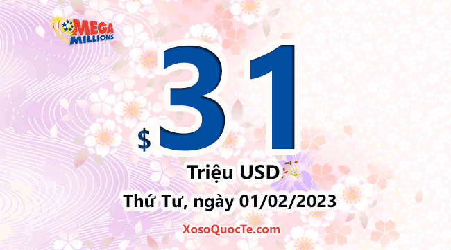 Giải thưởng tiếp theo $31 triệu đô-la đang đợi chủ nhân tấm vé số Mega Millions may mắn nhất vào phiên quay thưởng ngày Thứ Tư, ngày 01/02/2023.