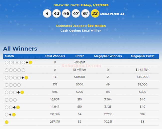 Cùng với đó, có 448,563 người trúng các giải nhỏ hơn từ $2 – $2000 mà bạn có thể xem trong bảng dưới đây.