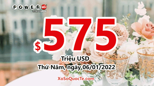 Giải thưởng cho người chọn đúng 6 số cho tấm vé jackpot Powerball sẽ là $575 triệu đô-la – con số vô cùng hấp dẫn! Phiên quay thưởng Powerball tới đây sẽ diễn ra vào Thứ Năm, ngày 06/01/2022.