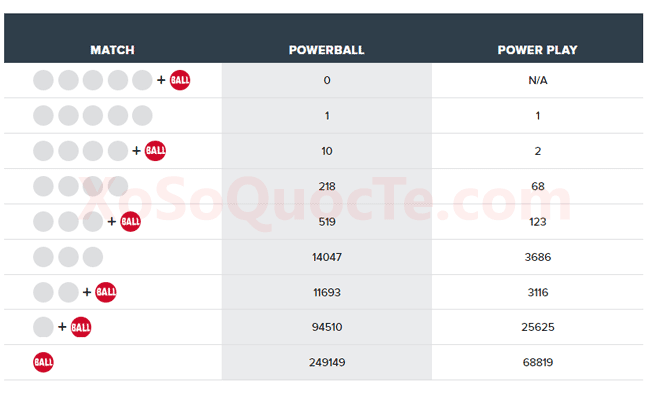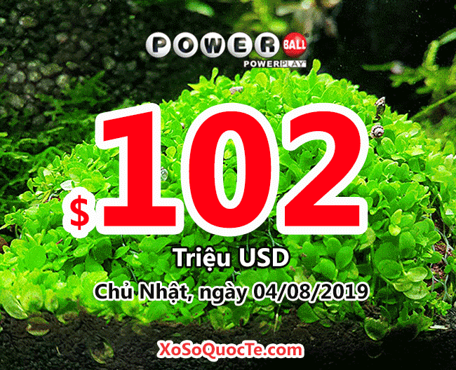 Trong khi xổ số Mega Millions lên $50 triệu đô-la (phiên quay thưởng sẽ diễn ra vào ngày 03/08/2019 tới đây) thì người chơi may mắn nhất của xổ số Powerball sẽ có cơ hội nhận được phần thưởng trị giá hơn 2,346 tỷ VNĐ tức $102 triệu USD trong phiên quay thưởng diễn ra vào Chủ Nhật, ngày 04/08/2019 (giờ Việt Nam).