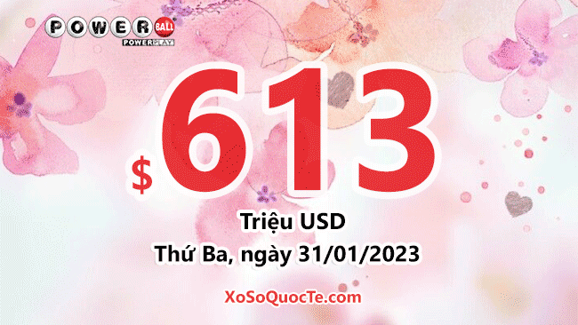 Jackpot xổ số Powerball của Mỹ đang tăng giá trị hấp dẫn từng ngày. Sau phiên ngày 29/01/2023 (giờ Việt Nam), $576.5 triệu đô-la chính thức chuyển thành $613 triệu đô-la, khi Powerball không tìm được người sở hữu tấm vé chứa tất cả 6 số của giải jackpot.