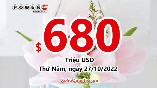 Phiên quay thưởng ngày 25/10/2022 của xổ số Powerball tiếp tục chưa ghi nhận bất cứ người chơi nào trúng giải jackpot. Theo đó, jackpot của Powerball tiếp tục tăng lên $680 triệu USD.