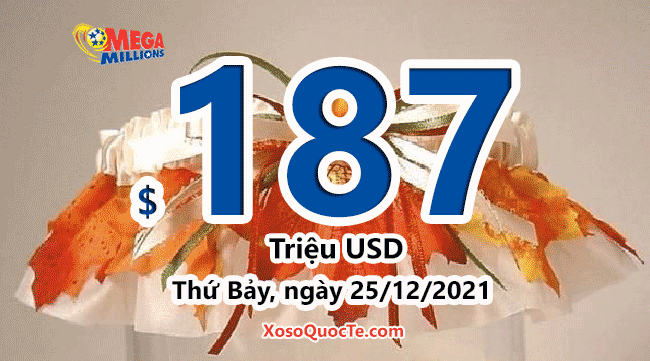 $187 triệu đô-la là con số chính thức cho phiên quay thưởng tiếp theo sẽ diễn ra vào dịp lễ Giáng Sinh – sau phiên ngày 22/12/2021 – xổ số Mega Millions chưa tìm được chủ nhân cho jackpot $171 triệu đô-la.