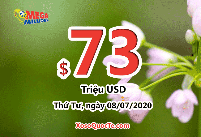 Mức thưởng của giải xổ số tự chọn Mega Millions nổi tiếng thế giới sau ngày 04/07/2020 tiếp tục tăng lên $73 triệu USD. Phiên quay thưởng này ghi nhận có 1 giải triệu đô-la.