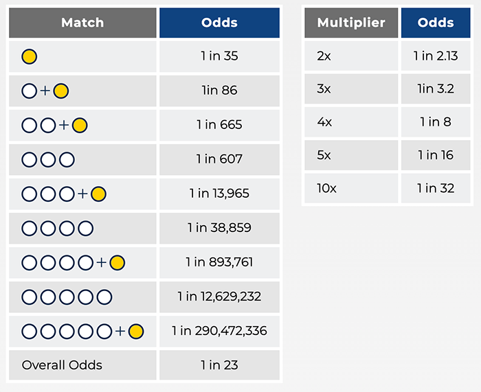 * Toàn bộ tỷ lệ thắng cược của giải thưởng bất kỳ trong giải xổ số Mega Millions là xấp xỉ khoảng 1 trên 23.0