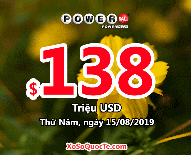 Jackpot xổ số tự chọn Powerball vừa tăng lên mức $138 triệu đô-la tương đương hơn 3,174 tỷ VNĐ sau phiên quay thưởng diễn ra ngày 11/8/2019 theo giờ Việt Nam. Sau nhiều phiên quay thưởng liền nhau, giải jackpot của Powerball vẫn chưa tìm thấy chủ nhân.
