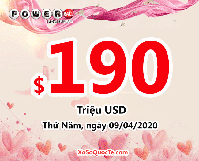 Jackpot xổ số Powerball của Mỹ đang tăng giá trị hấp dẫn từng ngày. Phiên ngày 05/04/2020 (giờ Việt Nam), $180 triệu đô-la chính thức chuyển thành $190 triệu đô khi Powerball không tìm được người sở hữu tấm vé chứa tất cả 6 số của giải jackpot.