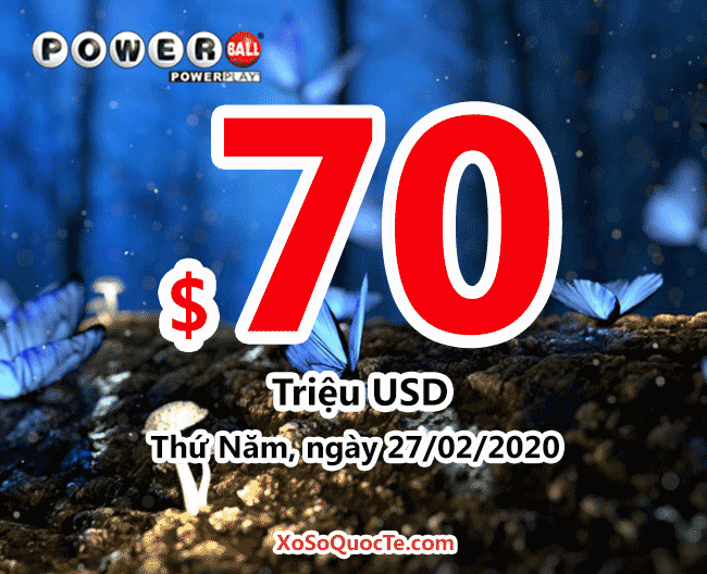 Phiên quay thưởng giải Powerball với jackpot $70 triệu đô-la sẽ được tổ chức vào ngày 27/02/2020 theo giờ Việt Nam. Vận may luôn hiện hữu xung quanh bạn!