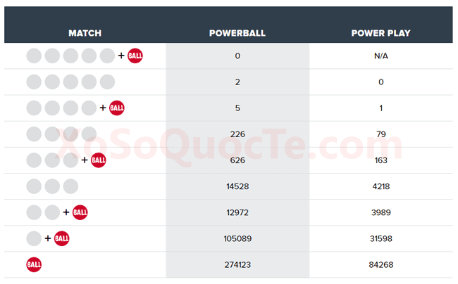 $2 triệu đô-la là số tiền thưởng đã được xổ số Powerball trao tặng cho 2 người may mắn tới từ Connecticut và Wisconsin. Trong phiên này, Power Play giúp nhân 3 lần giá trị giải thưởng cho những người chơi may mắn. Điều tuyệt vời trong phiên quay thưởng này là đã có tới 6 giải Nhì. Trong đó có 5 giải Nhì $50,000 đô-la; 1 giải $150,000 đô-la nhờ Power Play 3X.