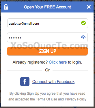 Nếu bạn đã có tài khoản trên TheLotter, hãy bấm liên kết “Click here” để đăng nhập ! Nếu bạn chưa có tài khoản, hãy nhập địa chỉ email và mật khẩu rồi bấm nút SIGN UP và thực hiện tiếp như hướng dẫn bên dưới !