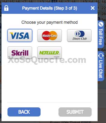 Bấm nút NEXT, một hộp thoại nữa sẽ xuất hiện cho phép bạn chọn phương tiện thanh toán phù hợp với bạn.