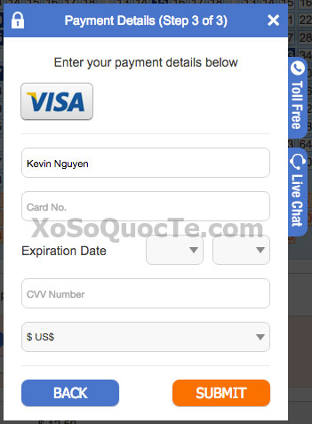 Bước 4: Tạo tài khoản trên TheLotter ! Hệ thống sẽ yêu cầu bạn nhập các thông tin bao gồm: địa chỉ email, mật khẩu (để đăng nhập vào TheLotter trong tương lai), thông tin cá nhân như Tên và Địa Chỉ (bạn nên nhập chính xác để có thể lãnh thưởng khi trúng giải lớn), thông tin thẻ ngân hàng Visa Debit của bạn (nếu bạn dùng thẻ Visa Debit để thanh toán).