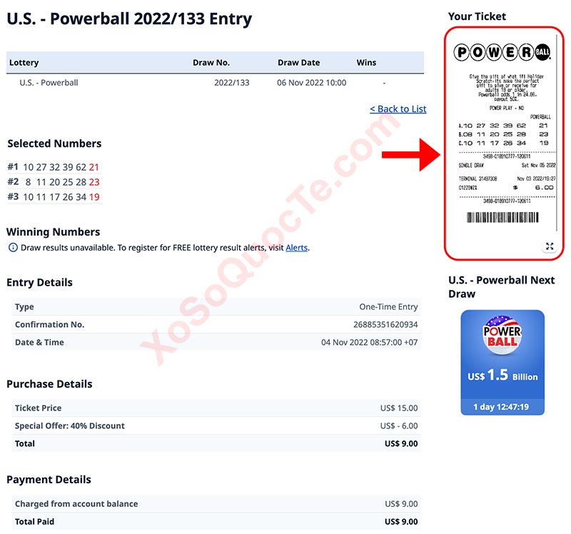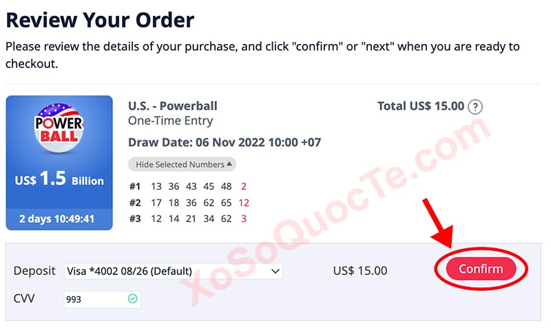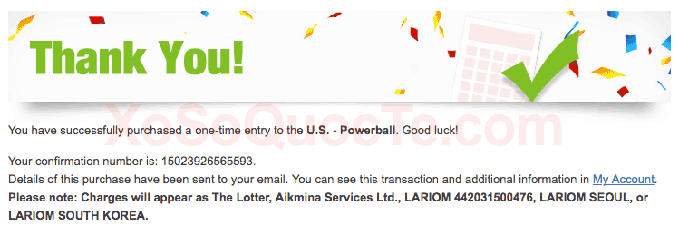 Bước 5: Xác nhận hoàn thành mua vé và chờ nhận kết quả xổ số Powerball.