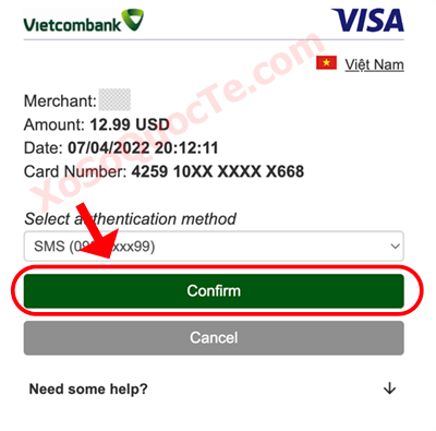 Chờ vài giây cổng thanh toán hiện ra. Chú ý: Nếu bạn chọn thanh toán bằng ví Neteller thì cổng thanh toán Neteller sẽ hiện ra; Trong ví dụ này cổng thanh toán được chọn là VISA DEBIT và sử dụng thẻ Visa Debit của Ngân Hàng Vietcombank, bạn kiểm tra thông tin sau đó bấm vào nút “Confirm“:
