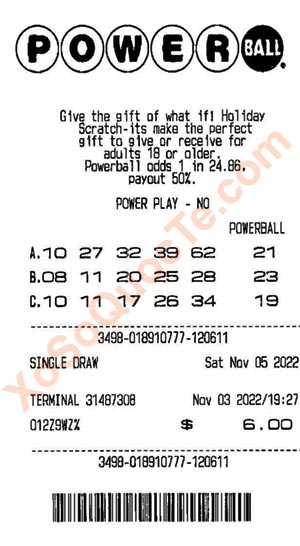 Dưới đây là bản SCAN của tấm vé Powerball được mua theo các bước hướng dẫn ở trên: