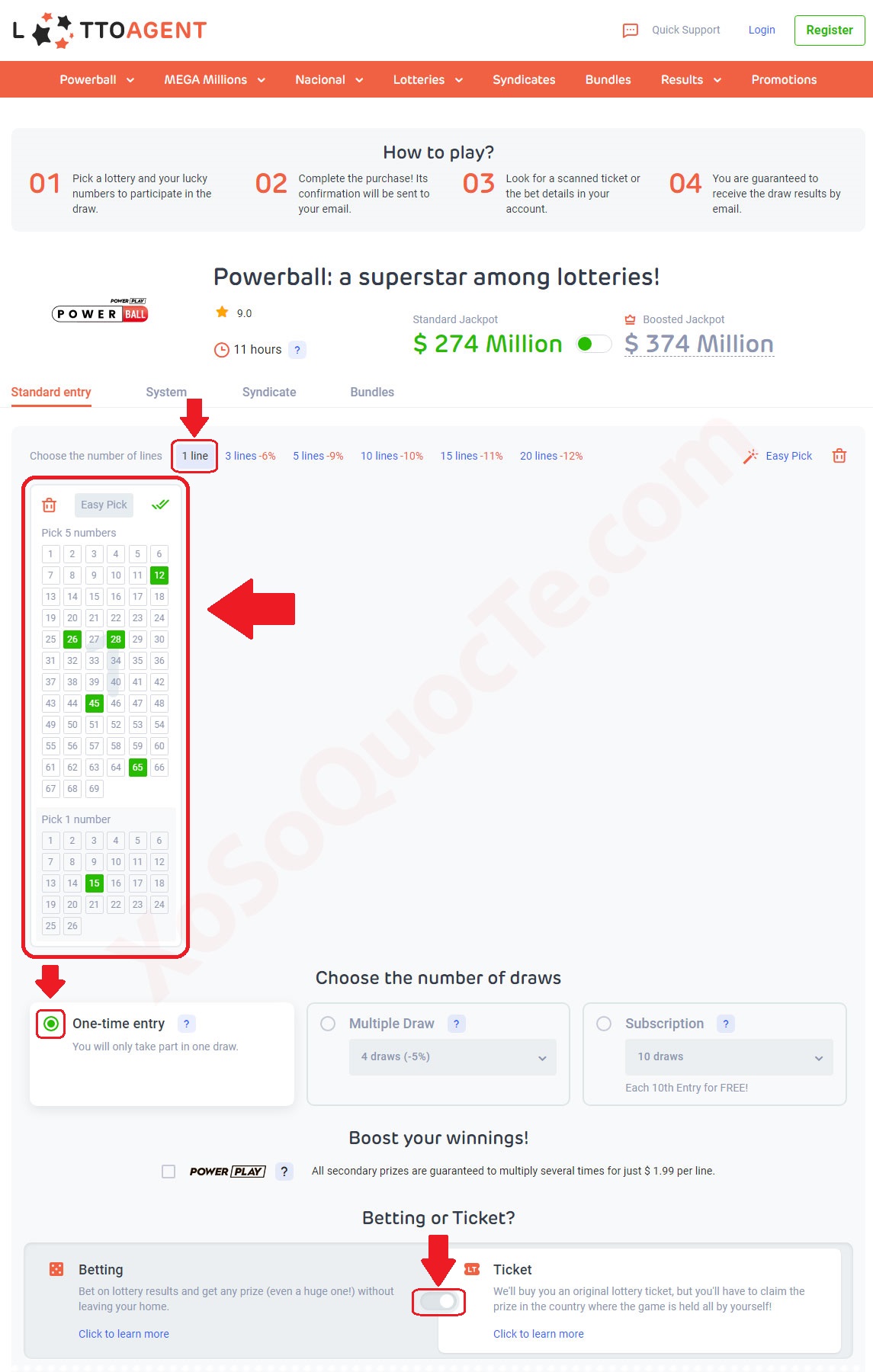 - Nếu đây là lần đầu tiên bạn tiến hành mua vé số Powerball trên Lotto Agent, bạn nên chọn One-time entry.