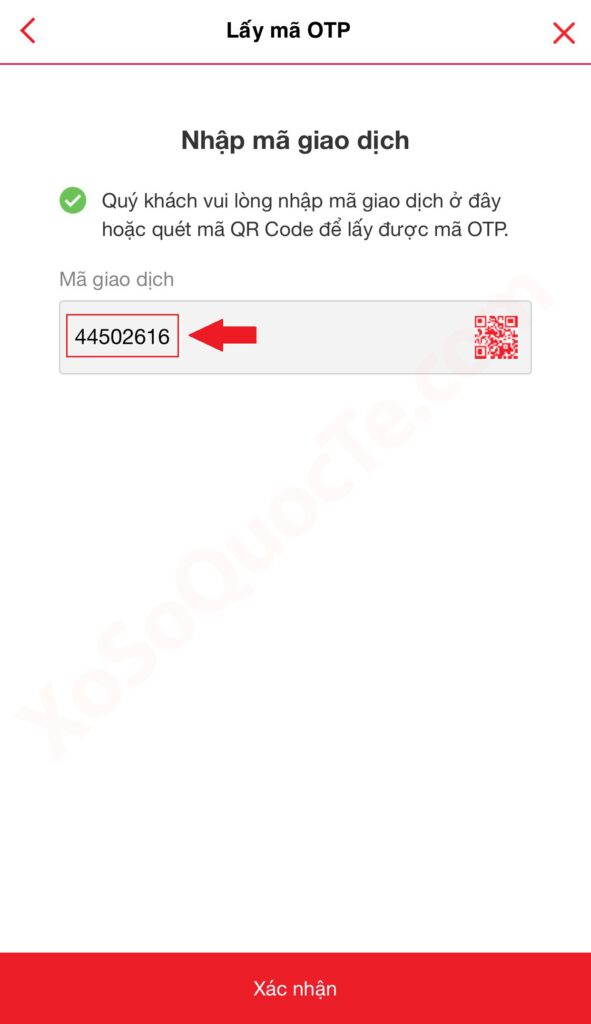 Hãy điền dãy số vừa được cung cấp ở trên vào ô Mã giao dịch, sau đó bấm Xác nhận: