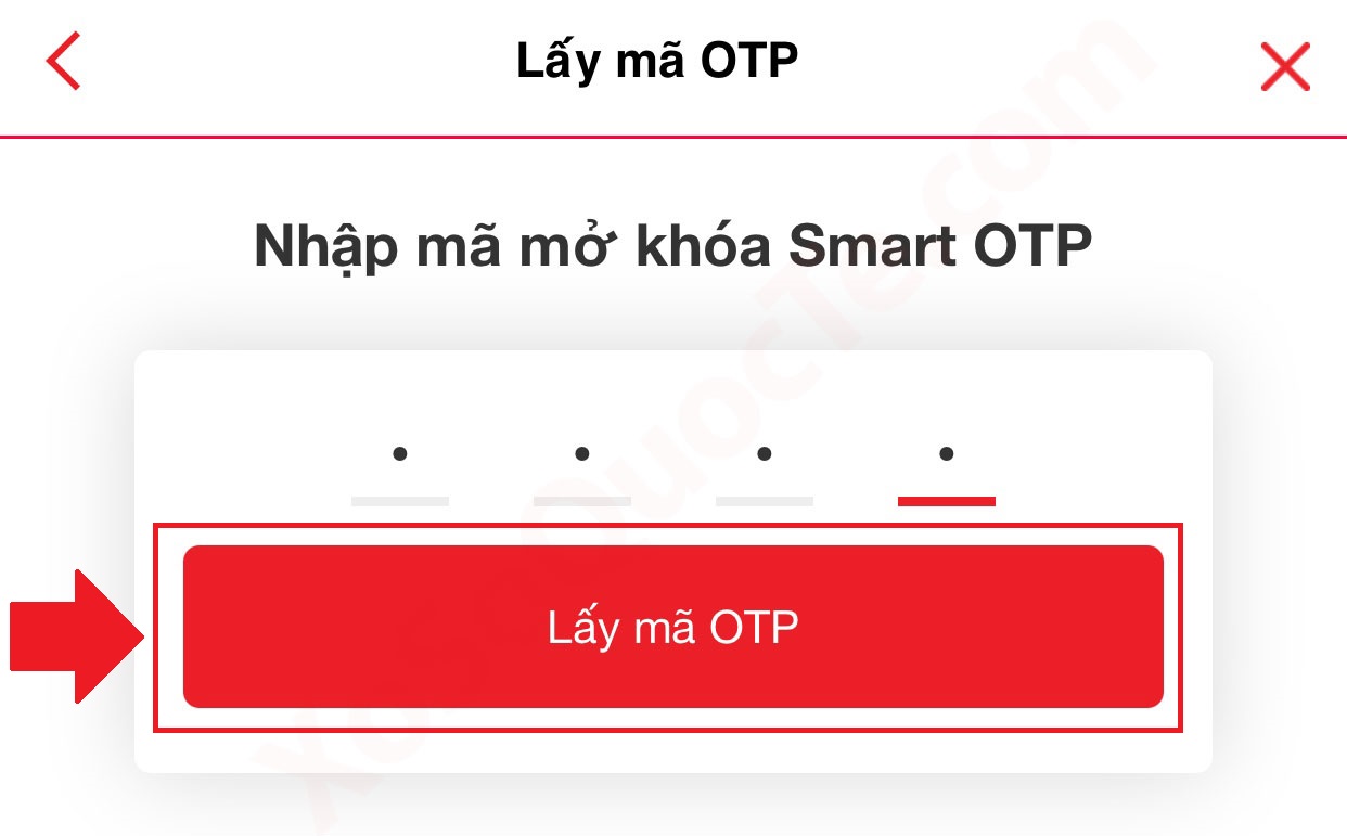Hãy nhập mã mở khóa Smart OTP của bạn, sau đó bấm chọn “Lấy mã OTP“: