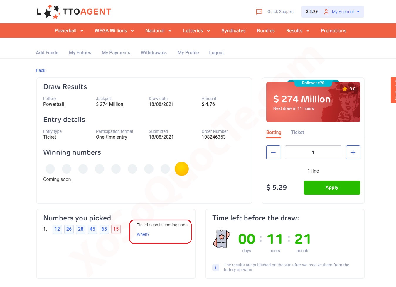 Bạn có thể truy cập vào trang chi tiết thông tin này bất kỳ lúc nào nếu muốn bằng cách Đăng Nhập tài khoản LottoAgent của bạn >> Chọn Account >> Chọn My entries