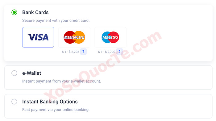 Ở tuỳ chọn Bank Cards, Lotto Agent cho phép bạn thanh toán bằng thẻ Visa Debit/ MasterCard: