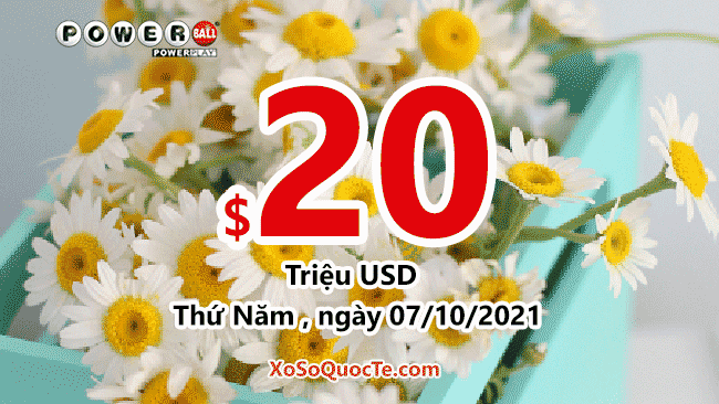 Jackpot của xổ số Powerball trở về mức khởi đầu $20 triệu đô-la – tương đương hơn 460 tỷ VNĐ. Phiên quay thưởng sẽ diễn ra vào thứ Năm, ngày 07 tháng 10 năm 2021 (theo giờ Việt Nam).