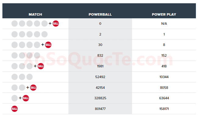 Ba người đã trở thành triệu phú đô-la trong phiên quay thưởng ngày 14/03/2019 (giờ Việt Nam) của xổ số Powerball. Giá trị giải thưởng của Powerball tiếp tục tăng lên mức $495 triệu USD.