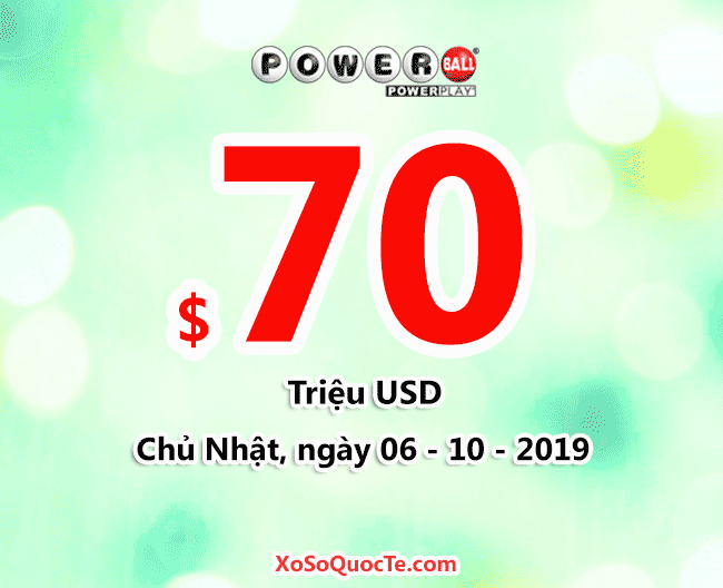 Trong khi giải xổ số Mega Millions lên $50 triệu đô (cho phiên ngày Thứ Bảy 05/10/2019 – giờ Việt Nam) thì xổ số Powerball cũng tăng giá trị giải thêm $10 triệu đô, đẩy giải jackpot lên mốc $70 triệu đô-la. Theo dõi phiên quay thưởng tiếp theo của Powerball sẽ diễn ra vào Chủ Nhật 06/10/2019 – giờ Việt Nam để biết liệu tấm vé trong tay ai sẽ nhận những giải thưởng cực đỉnh bạn nhé!