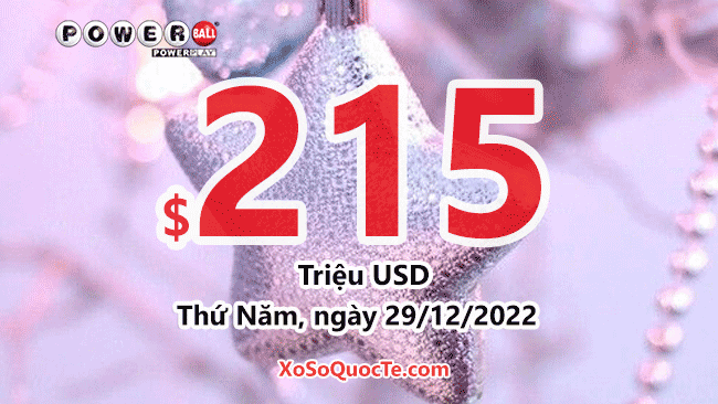 Xổ số Powerball đã được cộng dồn giá trị giải thưởng lớn nhất lên con số $215 triệu đô-la. Phiên quay thưởng tiếp theo của Powerball sẽ diễn ra vào Thứ Năm, ngày 29 tháng 12 năm 2022 (theo giờ Việt Nam). Ai sẽ sở hữu jackpot tiếp theo đây?