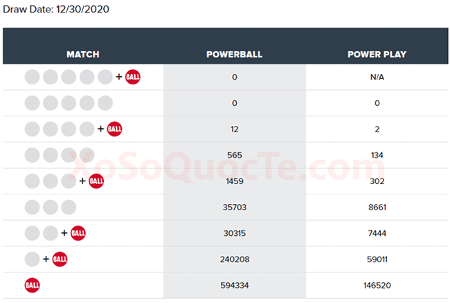 Sau phiên quay thưởng cuối cùng trong năm của xổ số Powerball – ngày 31/12/2020, jackpot đã trị giá tới $384 triệu USD – tương đương hơn 8,832 tỷ VNĐ khi sau nhiều phiên liên tiếp chưa tìm được người trúng cả 6 con số may mắn của giải jackpot.