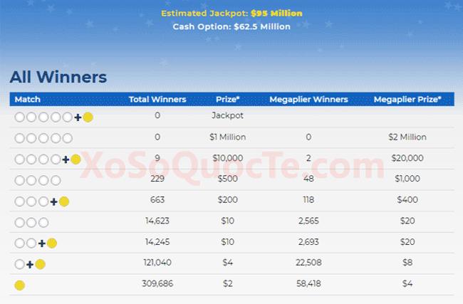 Thông tin chia sẻ trên blog này dành cho những bạn đọc yêu thích các giải thưởng xổ số quốc tế "nghìn tỷ" đang sinh sống tại các quốc gia cho phép dịch vụ mua hộ vé số quốc tế được phép hoạt động. Khi truy cập XoSoMy.com bạn đọc cần hiểu rằng thông tin trên website chỉ mang tính tham khảo từ những chia sẻ kinh nghiệm thực tiễn cá nhân của tác giả khi chơi xổ số quốc tế như Powerball, Mega Millions,...; Tác giả trang web XoSoMy.com không cung cấp dịch vụ mua hộ bất kỳ loại vé số quốc tế nào! Để mua vé số quốc tế bạn hãy tự chọn lựa cho mình một nhà cung cấp dịch vụ mua hộ đáng tin cậy trước khi tham gia cuộc chơi toàn cầu này!