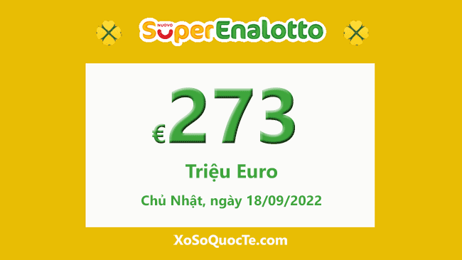 Giá trị jackpot của SuperEnalotto hiện là €273,000,000. Phiên quay thưởng sẽ diễn ra vào Chủ Nhật, ngày 18/09/2022 giờ Việt Nam. Ai sẽ là người chơi may mắn nhất?