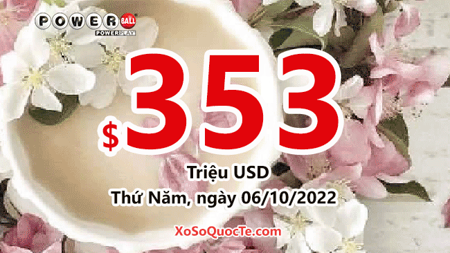 Hiện tại, xổ số Powerball đang có giá trị lớn thứ hai hành tinh với jackpot tương đương 8,119 tỷ VNĐ tức $353 triệu USD trong phiên quay thưởng diễn ra vào Thứ Năm, ngày 06/10/2022 (giờ Việt Nam).