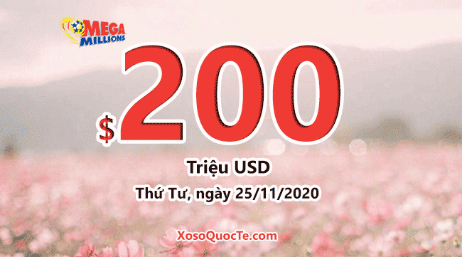 Với phiên quay số tiếp theo, phần thưởng cho người may mắn nhất của xổ số Mega Millions đã lên tới $200 triệu đô-la tương đương hơn 4600 tỷ VNĐ. Phiên quay thưởng này sẽ diễn ra vào Thứ Tư, ngày 25 tháng 11 năm 2020 (theo giờ Việt Nam).
