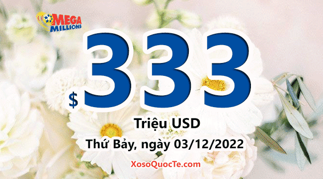 Với phiên quay số tiếp theo, phần thưởng cho người may mắn nhất của xổ số Mega Millions đã lên tới $333 triệu đô-la tương đương hơn 7,659 tỷ VNĐ. Phiên quay thưởng này sẽ diễn ra vào Thứ Bảy, ngày 03 tháng 12 năm 2022 (theo giờ Việt Nam).