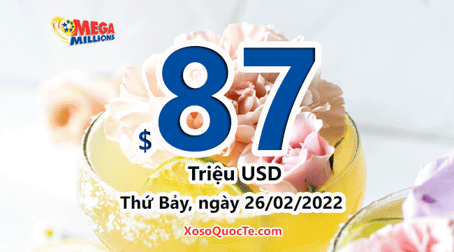 Lần quay tiếp theo cho giải thưởng lớn $87 triệu đô-la tới đây của xổ số Mega Millions sẽ diễn ra vào Thứ Bảy, ngày 26 tháng 02 năm 2022 theo giờ Việt Nam.