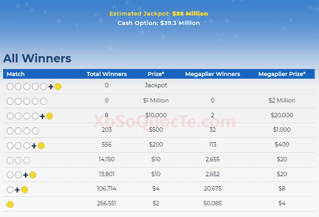 Thông tin chia sẻ trên blog này dành cho những bạn đọc yêu thích các giải thưởng xổ số quốc tế "nghìn tỷ" đang sinh sống tại các quốc gia cho phép dịch vụ mua hộ vé số quốc tế được phép hoạt động. Khi truy cập XoSoMy.com bạn đọc cần hiểu rằng thông tin trên website chỉ mang tính tham khảo từ những chia sẻ kinh nghiệm thực tiễn cá nhân của tác giả khi chơi xổ số quốc tế như Powerball, Mega Millions,...; Tác giả trang web XoSoMy.com không cung cấp dịch vụ mua hộ bất kỳ loại vé số quốc tế nào! Để mua vé số quốc tế bạn hãy tự chọn lựa cho mình một nhà cung cấp dịch vụ mua hộ đáng tin cậy trước khi tham gia cuộc chơi toàn cầu này!