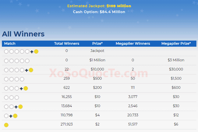 Thông tin chia sẻ trên blog này dành cho những bạn đọc yêu thích các giải thưởng xổ số quốc tế "nghìn tỷ" đang sinh sống tại các quốc gia cho phép dịch vụ mua hộ vé số quốc tế được phép hoạt động. Khi truy cập XoSoMy.com bạn đọc cần hiểu rằng thông tin trên website chỉ mang tính tham khảo từ những chia sẻ kinh nghiệm thực tiễn cá nhân của tác giả khi chơi xổ số quốc tế như Powerball, Mega Millions,...; Tác giả trang web XoSoMy.com không cung cấp dịch vụ mua hộ bất kỳ loại vé số quốc tế nào! Để mua vé số quốc tế bạn hãy tự chọn lựa cho mình một nhà cung cấp dịch vụ mua hộ đáng tin cậy trước khi tham gia cuộc chơi toàn cầu này!