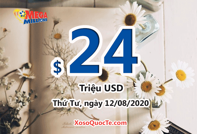 Giải thưởng cho lần quay số kế tiếp của xổ số Mega Millions diễn ra vào Thứ Tư, ngày 12 tháng 08 năm 2020 (theo giờ Việt Nam) tiếp tục tăng giá trị giải thưởng lên mức $24 triệu USD tương đương hơn 552 tỷ VNĐ.