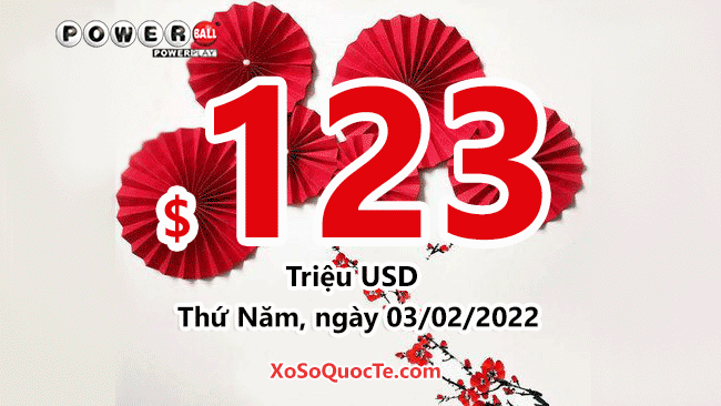 Lần quay thưởng kế tiếp của giải xổ số Powerball trị giá tương đương với $123 triệu USD sẽ diễn ra vào Thứ Năm, ngày 03 tháng 02 năm 2022 – theo giờ Việt Nam. Bạn đã sẵn sàng?