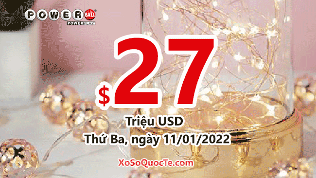 Người chơi may mắn nhất của xổ số Powerball sẽ có cơ hội nhận được phần thưởng trị giá $27 triệu đô-la trong phiên quay thưởng diễn ra vào Thứ Ba, ngày 11/01/2022 (giờ Việt Nam).