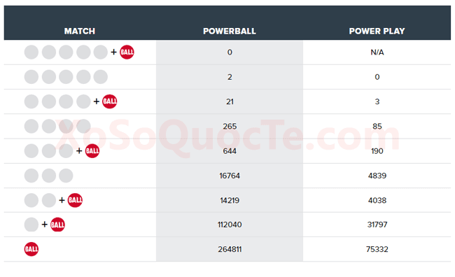 Theo thông tin từ hãng xổ số Powerball, phiên quay thưởng lần này tuy chưa tìm được chủ nhân của giải thưởng lớn nhưng 2 tấm vé trúng giải Nhất trị giá $1 triệu đô-la đã thuộc về hai người chơi may mắn tại bang Kentucky và South Carolina. Cùng với đó là 24 người may mắn trúng giải Nhì, trong đó 20 người nhận được giải thưởng mỗi giải trị giá $50,000 đô-la, 3 người nhận được giải thưởng mỗi giải trị giá $100,000 đô-la nhờ có thêm tùy chọn Ngôi Sao May Mắn – Power Play 2X và 1 người từ California nhận $27,837.
