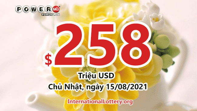 Ngày 12/08/2021 (giờ Việt Nam) – để tiếp tục mùa jackpot sôi động, xổ số Powerball đã đẩy giải thưởng tiếp theo lên mức $258 triệu đô, khi $241.9 triệu đô chưa tìm được chủ.