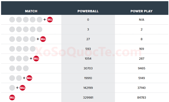 Đồng thời, trong phiên quay thưởng này có tới 35 tấm vé sở hữu sự trùng khớp của 4 trái bóng trắng và trái bóng đỏ Powerball ghi số 18.